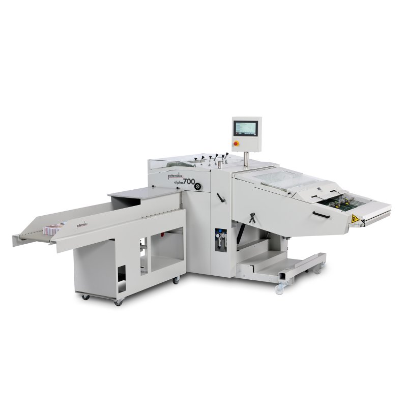 The alpha-pro was developed as a universal delivery for processing folded brochures, especially signatures. The products are collected by the machine, stacked and the neatly jogged stacks are delivered to a roller table. The operator removes the jogged stacks from the delivery table in an ergonomically favorable manner and no longer has to push the products open. This means that the performance of the folding machine can still be fully exploited after several hours of production without tiring the operator.