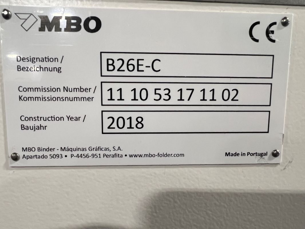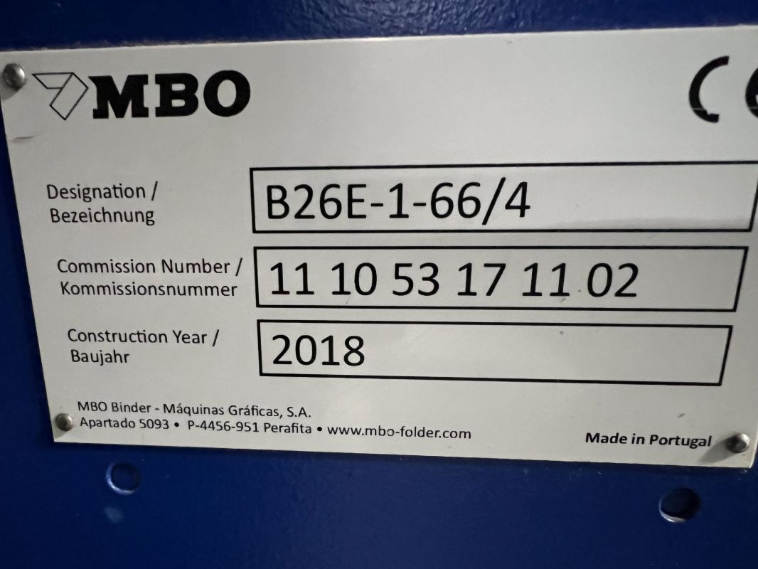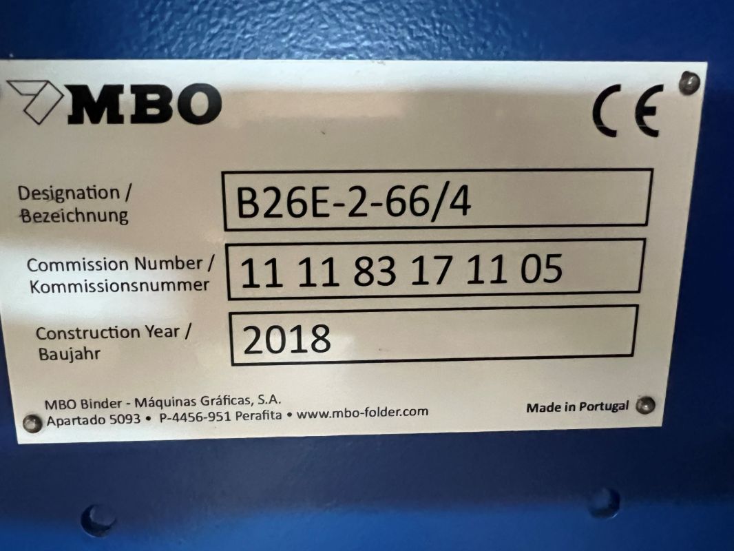 2018 MBO B26E Cont. Feed 4/4 w noise hoods w/ A76 Delivery, 24-pin, MC Control.