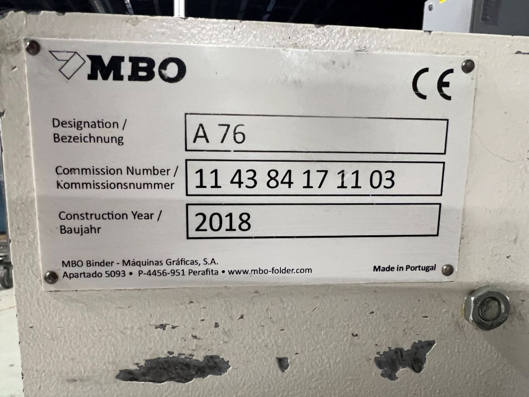 Used 2018 MBO B26E Cont. Feed 4/4 w noise hoods w/ A76 Delivery